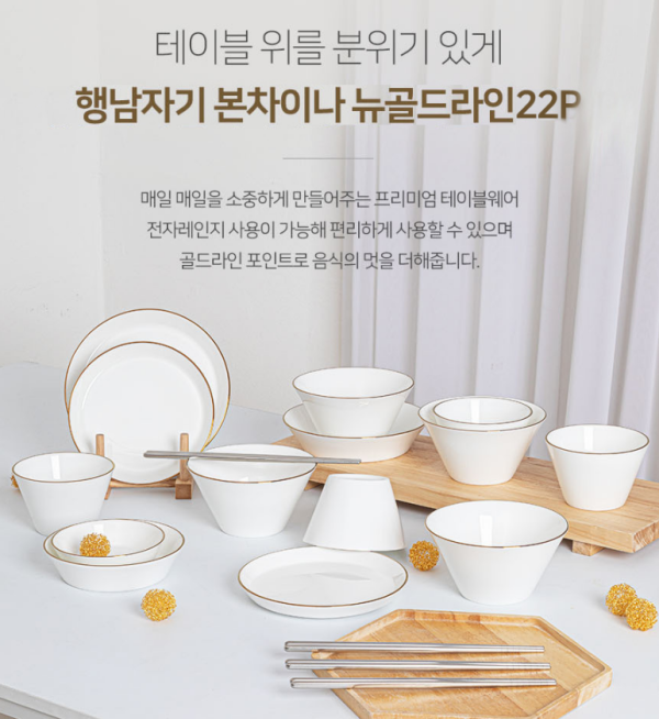 [경매 9차] [마지막-행남자기]NEW 본차이나 뉴골드라인 4인홈세트 22p