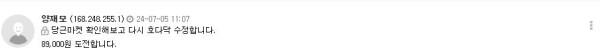 양재모차장님 89,000원 낙찰 축하드립니다.