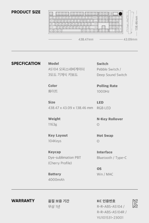 [92차- 완전무료] 앱코 AS104 유무선 블루투스 기계식 키보드 딥 사운드축