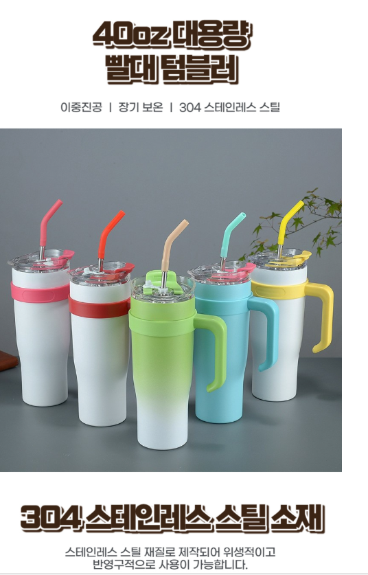 [마감] 304 스텐 40oz 대용량 텀블러 캠핑 자동차 손잡이 스텐 텀블러 1250ml