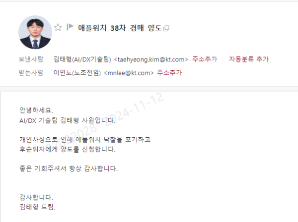 김태형님 개인사정으로 양도하여 차순위인 윤형중님 290,100원 낙찰 축하드립니다.