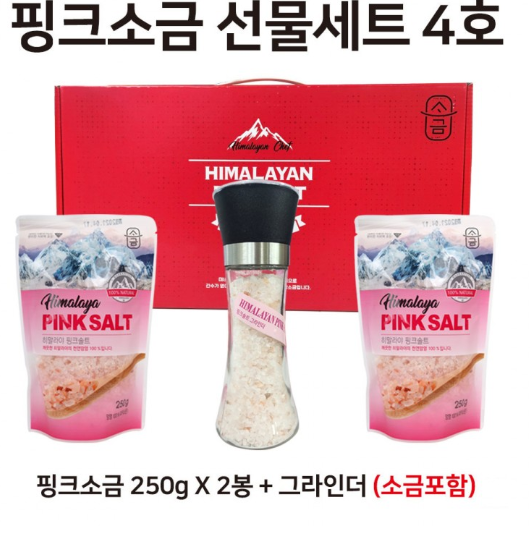 [마감] 핑크소금 선물세트 4호 ( 핑크소금 250g x 2봉 + 그라인더 (소금 180g 포함)