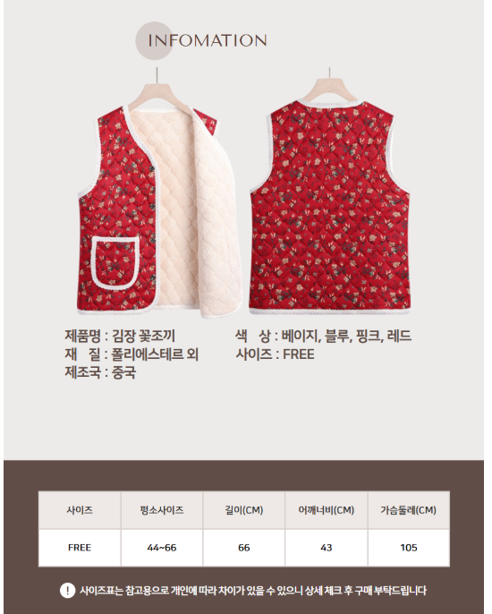 [마감] 최저가 물량 확보 고퀄리티 할머니 레트로 꽃무늬 김장 조끼