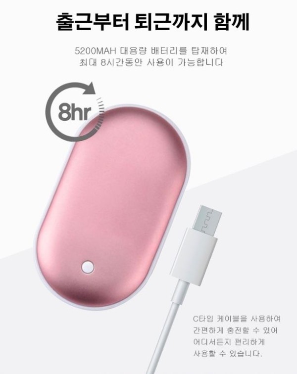 [마감] KC인증 핸드워머 손난로 보조배터리 5200mAh (C타입 충전)