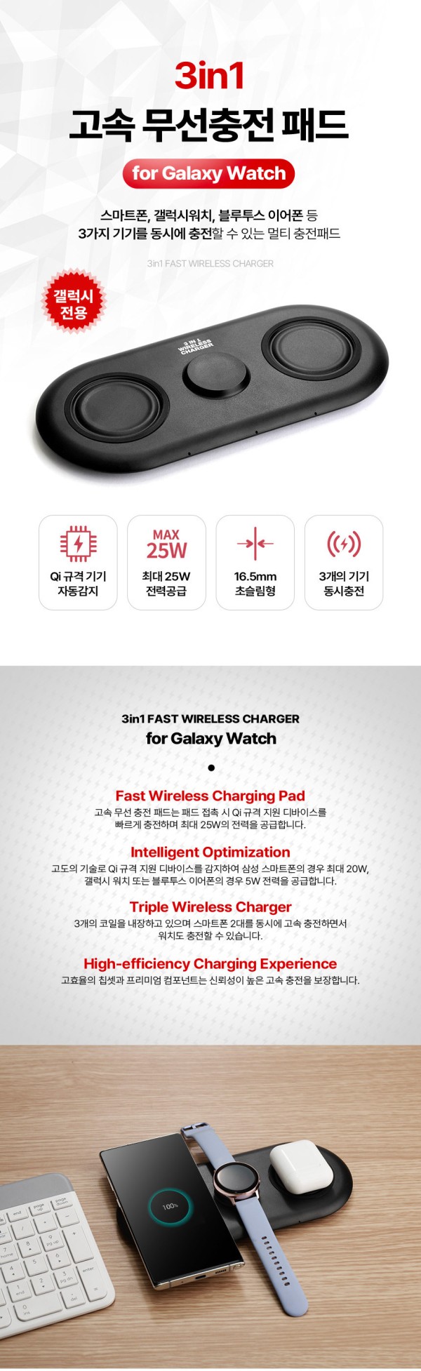 [마감] 충전기 3in1 애플워치 갤럭시워치 25w 무선충전기 맥세이프 에어팟 애플 삼성 듀얼 멀티