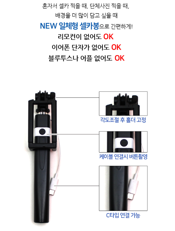 [공구] C타입 8핀 일체형 셀카봉 유선셀카봉 > 공동구매 게시판